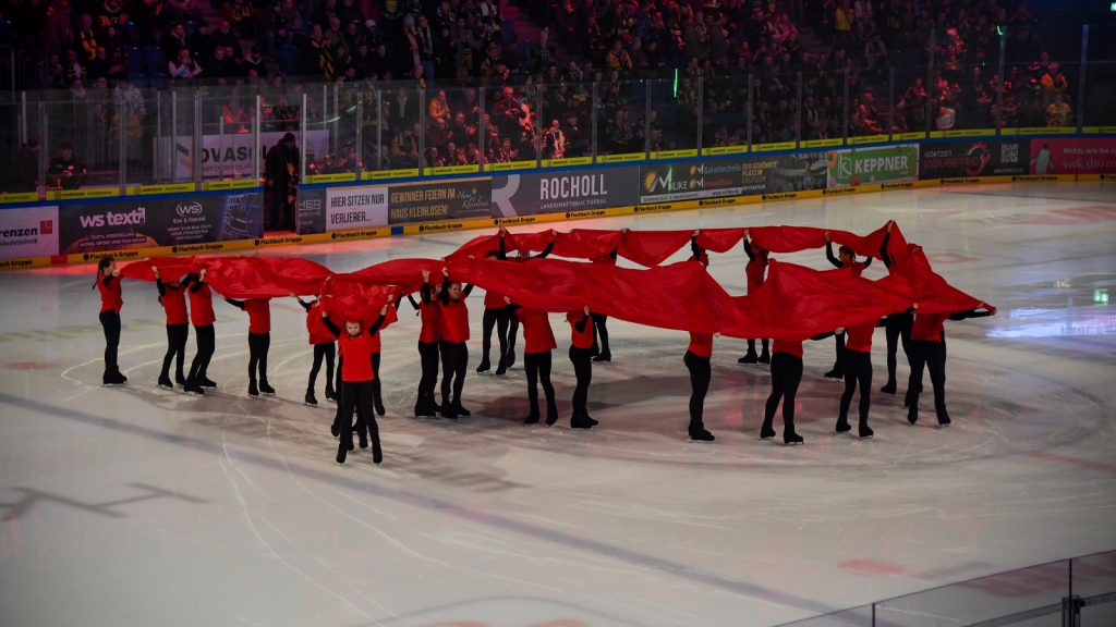 Bereits vor dem Spiel sorgten die Eiskunstläuferinnen des Eissport-Vereins Krefeld für einen besonderen emotionalen Auftakt: Mit einer liebevoll einstudierten Choreographie stellten sie die Aidsschleife künsterlich auf dem Eis dar und schufen damit ein starkes, visuelles Zeichen gegen Stigmatisierung und für Zusammenhalt.