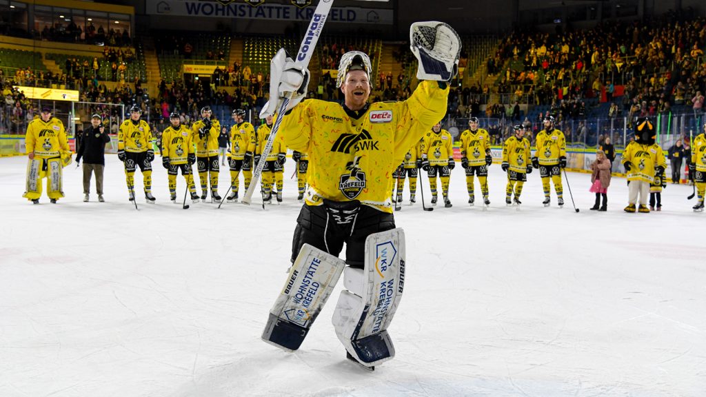 Die Krefeld Pinguine gewinnen mit 3:1 gegen den EV Landshut. Danny aus den Birken hält über 53 Minuten die Null, muss letzten Endes aber doch noch hinter sich greifen.